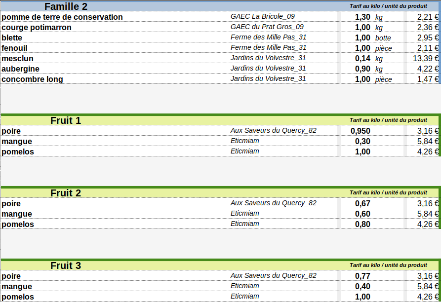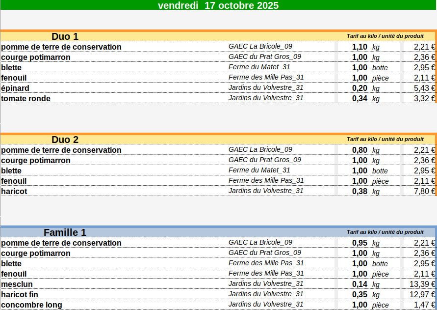 - Panier Famille (5 à 7 légumes différents) : 18.30€